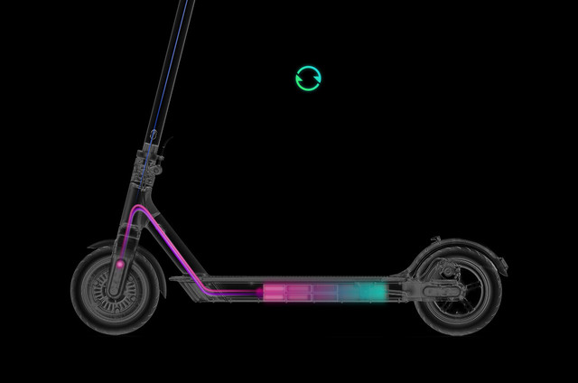 На панелі управління відображаються індикатор несправності та ЕКО режим. Коротке натискання на кнопку увімк./ викл. включає самокат, трьохсекундне натискання на цю ж кнопку його вимикає. Короткий одноразове натискання включає і вимикає ходові вогні. Перемикання швидкостей здійснюється коротким подвійним натисканням на кнопку увімк./ викл.